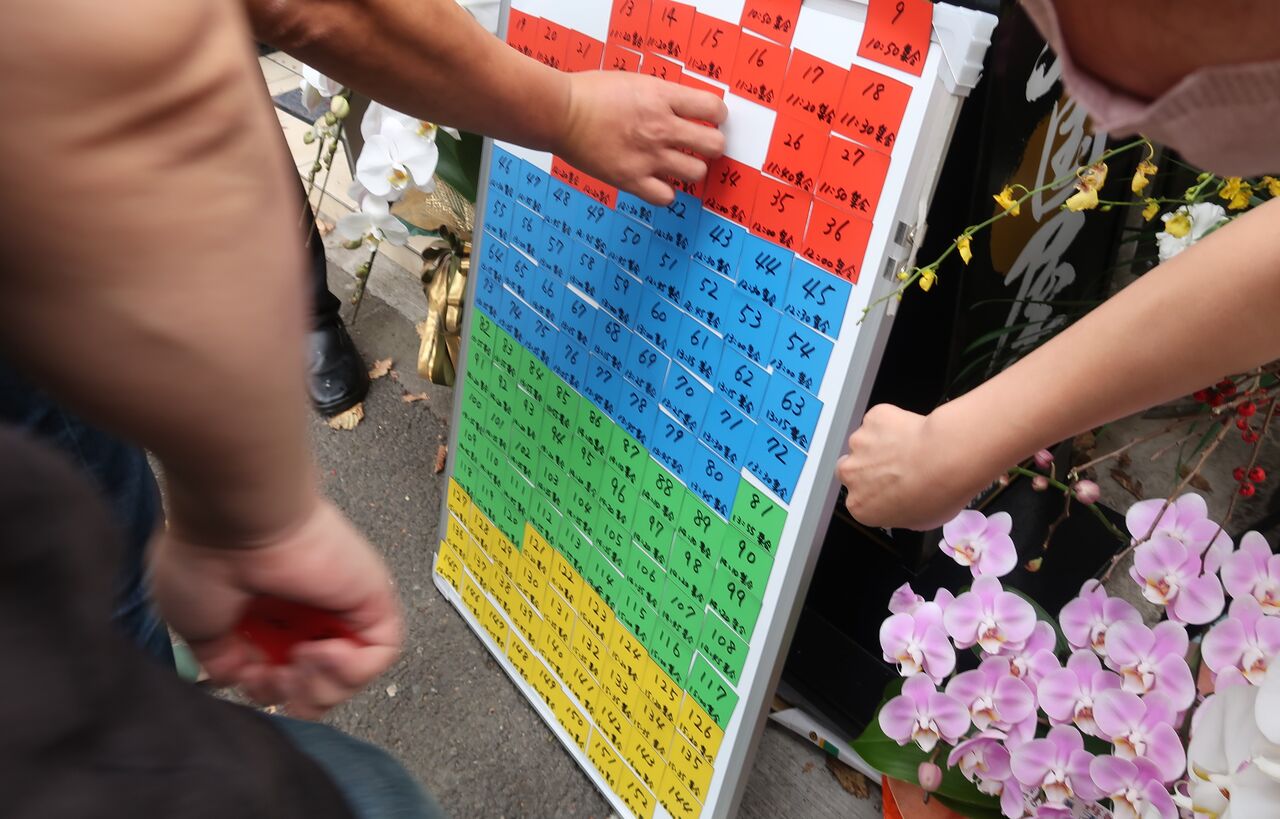 7:00¤«¤éÇÛÉÛ¤µ¤ì¤ëÀ°Íý·ô¤òÌ㤦°Ù¤ËÄ«Á᤯¤ËÅþÃ夷¤Þ¤·¤¿¤¬¡¢Á°¤Ëʤó¤Ç¹ÔÎ󤬽ÐÍè¤Æ¤·¤Þ¤¦¤Èº¤¤ë¤È¤Î»ö¤Ç¡¢¶á¤¯¤Î¥³¥¤¥ó¥Ñ¡¼¥¥ó¥°¤ÇÂÔ¤Á¡¢²þ¤á¤Æ7:00¤Ë¹Ô¤Ã¤Æ¤ß¤ë¤È·ë¹½¤Ê¿Í¿ô¤¬½¸¤Þ¤Ã¤Æ¤¤¤Þ¤·¤¿¡£