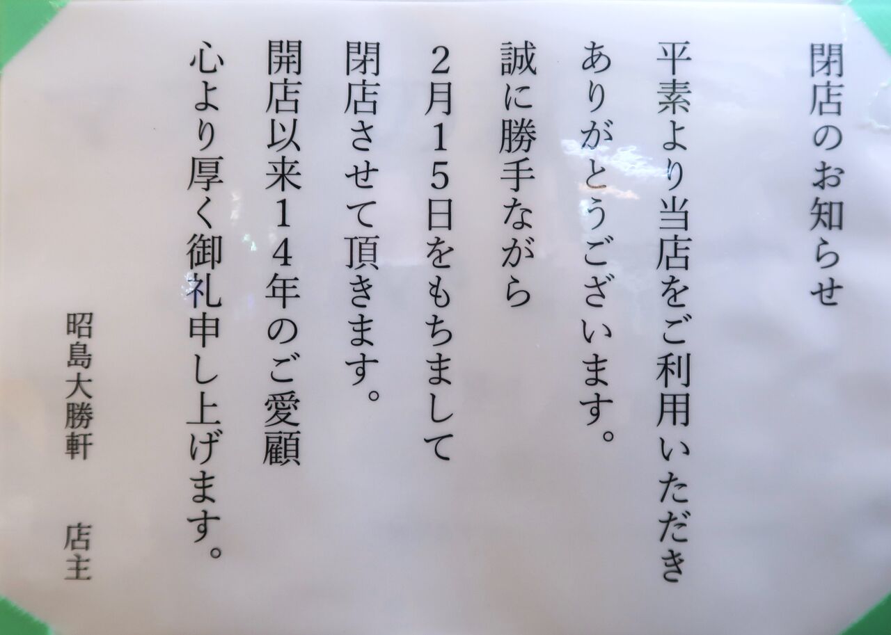 ¸Ä¿ÍŪ¤ËÀΤΎ¢¾¼ÅçÂ羡¸®Ž£¤Ë»×¤¤Æþ¤ì¤Ï̵¤«¤Ã¤¿¤±¤ì¤É¡¢¸½Å¹¼ç¤Ë¤Ê¤Ã¤Æ¤«¤é¤Ï»þ¡¹¿©¤Ù¤Ë¹Ô¤¤¿¤¯¤Ê¤ë¤ªÅ¹¤À¤Ã¤¿¤ÎÊÄŹ¤µ¤ì¤ë¤Î¤ÏÀ¨¤¯»Äǰ¤Ç¡¢º£¸å¤â¤·¤«¤·¤¿¤é¿·¤·¤¤Å¹¼ç¤Î¸µ¤Ç¤Þ¤¿Ž¢¾¼ÅçÂ羡¸®Ž£¤ÏÉü³è¤¹¤ë¤«¤â¤·¤ì¤Þ¤»¤ó¤¬¡¢¸½Å¹¼ç¤ÎÌ£¤ò¿©¤Ù¤é¤ì¤ë¤Î¤Ï»Ä¤ê¶Ï¤«¤È¸À¤¦¤³¤È¤ÇºÇ¸å¤Ë¿©¤Ù¤Ë¹Ô¤Ã¤Æ¤¤Þ¤·¤¿¡£